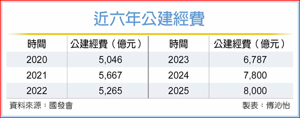 國發會表示,截至10月底的公建經費執行數額,較去年同期增加近100億元;今年計畫經費規模突破8千億元,則較去年增加逾200億元。希望各部會加強督導,確保工程如期推進及款項及時撥付。
