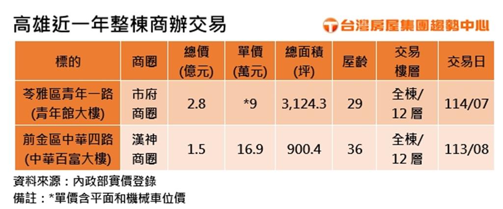 在此之前的去年8月,位於前金區中華四路近青年二路口,距離該商辦大樓車程約3分鐘之處,也有另一棟12層樓商辦「中華百富大樓」,由河堤集團旗下企業「河堤管理顧問(股)公司」,以約1.5億元整棟打包。