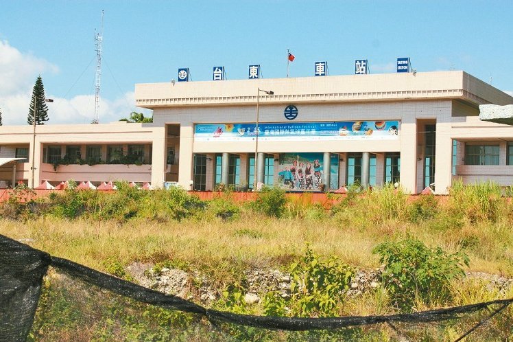 火車站前工地缺乏管理,任其長滿雜草,民眾認為影響遊客對台東的觀光形象。 記者潘俊偉/攝影