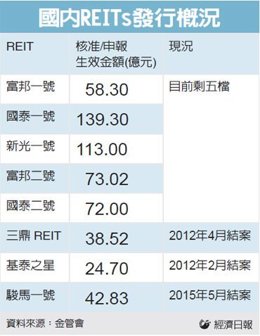 不動產市場價格有下探跡象,金管會昨(12)日放寬不動產投資信託基金(REITs)發行規定,開放信託機構及不動產管理機構,可以收取績效報酬。業者認為,此舉有助掌握目前市場變化機會推證券化商品,活絡REITs市場。 根據金管會資料,國內共發行過八檔REITs,其中已有三檔清算掉,目前只剩五檔,包括富邦一號、國泰一號、新光一號、富邦二號及國泰二號。 信託業者表示,最近幾年因不動產市場行情走多頭,對投資人來說,直接買賣不動產即可獲利,加上這幾年房價漲,但租金仍低,也使得證券化商品的收益往下,導致REITs發行有限。