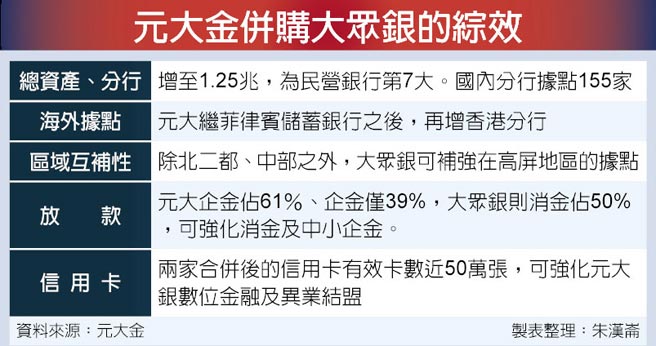 元大金併購大眾銀的綜效