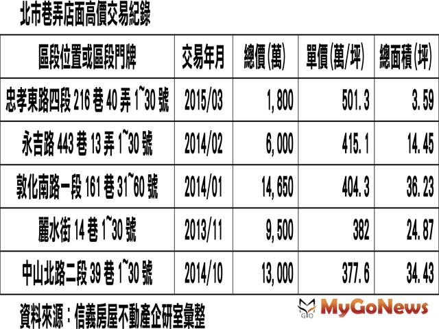 台北市東區粉圓巷內店面成交每坪501萬元,北市巷弄最貴店面(圖:信義房屋)