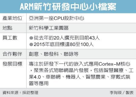 矽智財(IP)廠安謀(ARM)昨(22)日舉行新竹辦公室擴大營運暨亞洲第一座CPU設計中心開幕典禮。看好亞太市場,ARM全球執行副總裁暨大中華區總裁吳雄昂表示,秉持「深耕台灣.成就萬物相聯」經營理念,將與區域合作夥伴更密切合作,共同搶進全球物聯網應用市場。 安謀去年在台北國際電腦展期間宣布,將在新竹科學園區成立全球第四座、亞洲首座CPU設計中心。歷經一年的人才招募與籌備,昨天舉行開幕典禮,ARM處理器部門總經理James McNiven、吳雄昂及行政院副院長張善政、經濟部次長楊偉甫等人出席。 安謀新竹辦公室去年有20人,目前有43位研發人員,今年底要增加到80至100人。除CPU設計團隊,還包括與晶圓代工、EDA及主要客戶合作密切的矽智財團隊,以及支援亞太區繪圖處理器Mali客戶的團隊。 吳雄昂表示,2008年至2014年,安謀台灣員工人數增加七倍以上,與台灣夥伴合作的晶片出貨量成長九倍以上。安謀核心的裝置產品,七年以來為台灣夥伴帶來逾五倍營收成長,台灣具備完整的半導體產業鏈,加上有高素質研發人才,選擇台灣做為亞洲第一座CPU設計中心地點。 安謀是全球處理器架構龍頭,在全球行動裝置應用處理器市占超過95%,協助蘋果、高通、博通、輝達、超微等客戶在行動裝置取得領先地位。安謀在竹科成立CPU研發中心,半導體業者預期,將大幅提升台灣在行動智慧裝置戰力,有助聯發科、台積電等業者擴大搶食穿戴式與物聯網商機。 吳雄昂說,安謀將與區域合作夥伴展開更密切合作。據了解,安謀在台合作夥伴包括創意、聯詠、聯發科等大廠。 James McNiven強調,安謀成功關鍵在於創新,亞洲市場占安謀全球總營業額50.3%,全球最大。在台灣成立CPU設計中心,將是安謀未來成功關鍵,研發中心將專注嵌入式應用研發