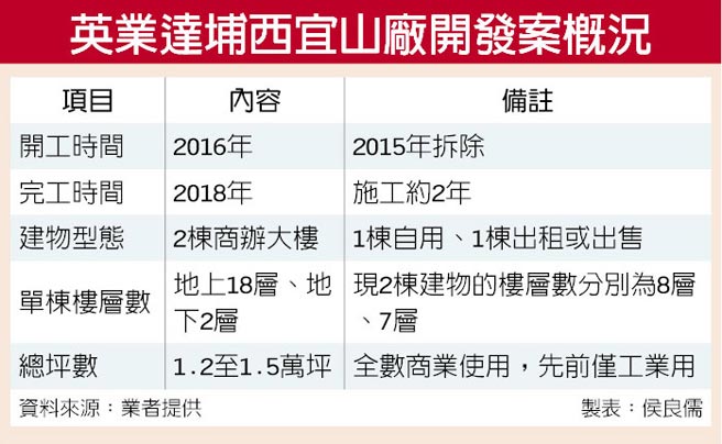 陸廠資產活化啟動!英業達(2356)董事長李詩欽昨(22)日透露,埔西宜山廠今年將拆除,預計明年動工、2018年完工,未來會有2棟18層的商辦,1棟自用、另1棟出租或銷售。本業展望方面,由於Win10仍處於交替期,且公司新產品至季末才會出貨,期望第4季營運能等同第3季水準。 早在2000年時,英業達在上海埔西購入宜山廠土地,做為當時筆電的生產基地。然而,由於業務量高於負載產能,遂於2004年起將產線轉移至浦東廠。2005年之後,宜山廠做為英業達軟體、雲端事業的辦公用地,並將部分閒置空間出租,2014年英業達成立子公司「英憲達」,統籌宜山廠資產開發。 李詩欽表示,宜山廠未來確定會改建成2棟地上18層、地下2層的商辦大樓,將有1棟是自用的上海營運總部,另1棟對外出租或銷售,預計在今年拆除原建物,明年動工、大後年(2018)完工。以單層樓地面積約500多坪來算,未來總坪數達1.2至1.5萬坪,且全數商業使用、而非目前僅做工業用途。 本業方面,李詩欽也首度鬆口談「小米NB」訂單,明確表示「現在在進行」,且集團旗下專責小米機的英華達全權負責,預計明年第1季或第2季就會出貨,符合本報先前披露。有鑑於小米握已有2億名的「米粉」,且未來將用手機的思維去營銷筆電,因此他看好小米NB能走出新的風貌。