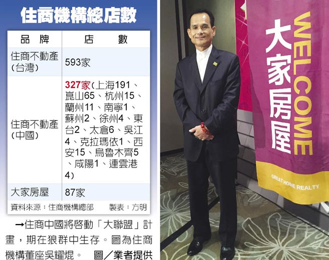 住商機構總店數 →住商中國將啟動「大聯盟」計畫,期在狼群中生存。